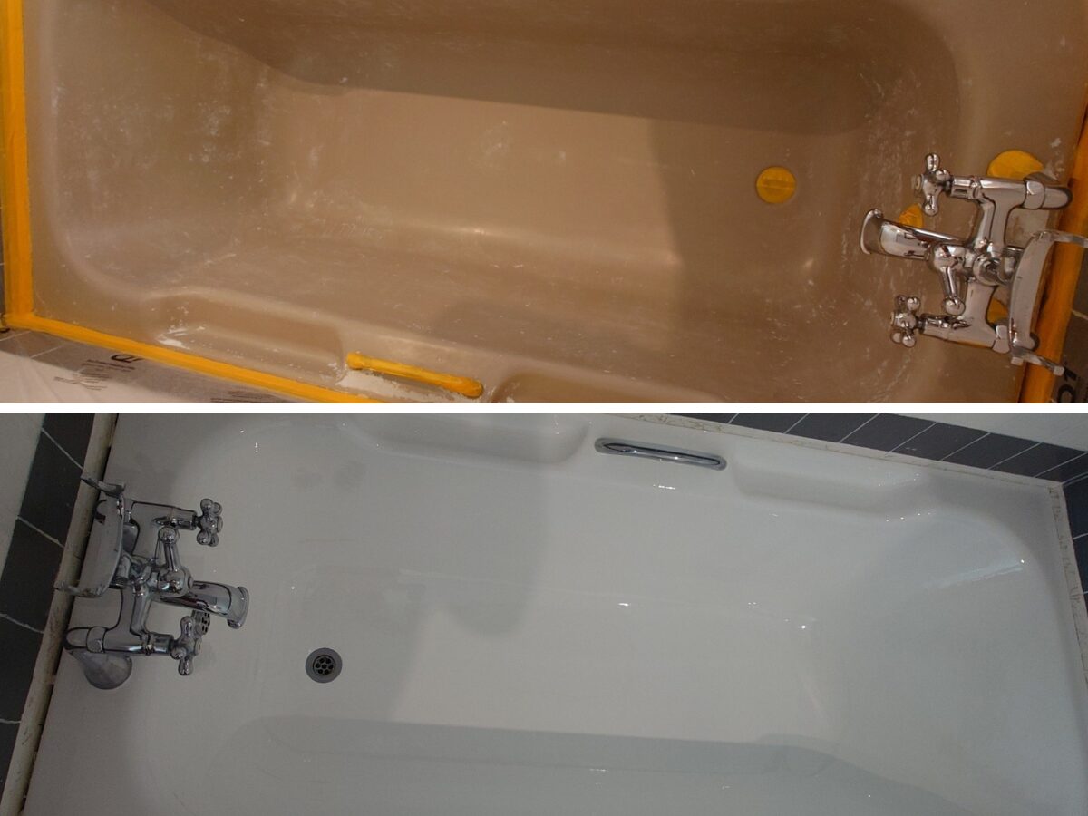 Cost-wise it’s usually much cheaper than buying new like refinishing a bathtub can be up to 75% less expensive and you avoid disposal fees that come with replacing items.